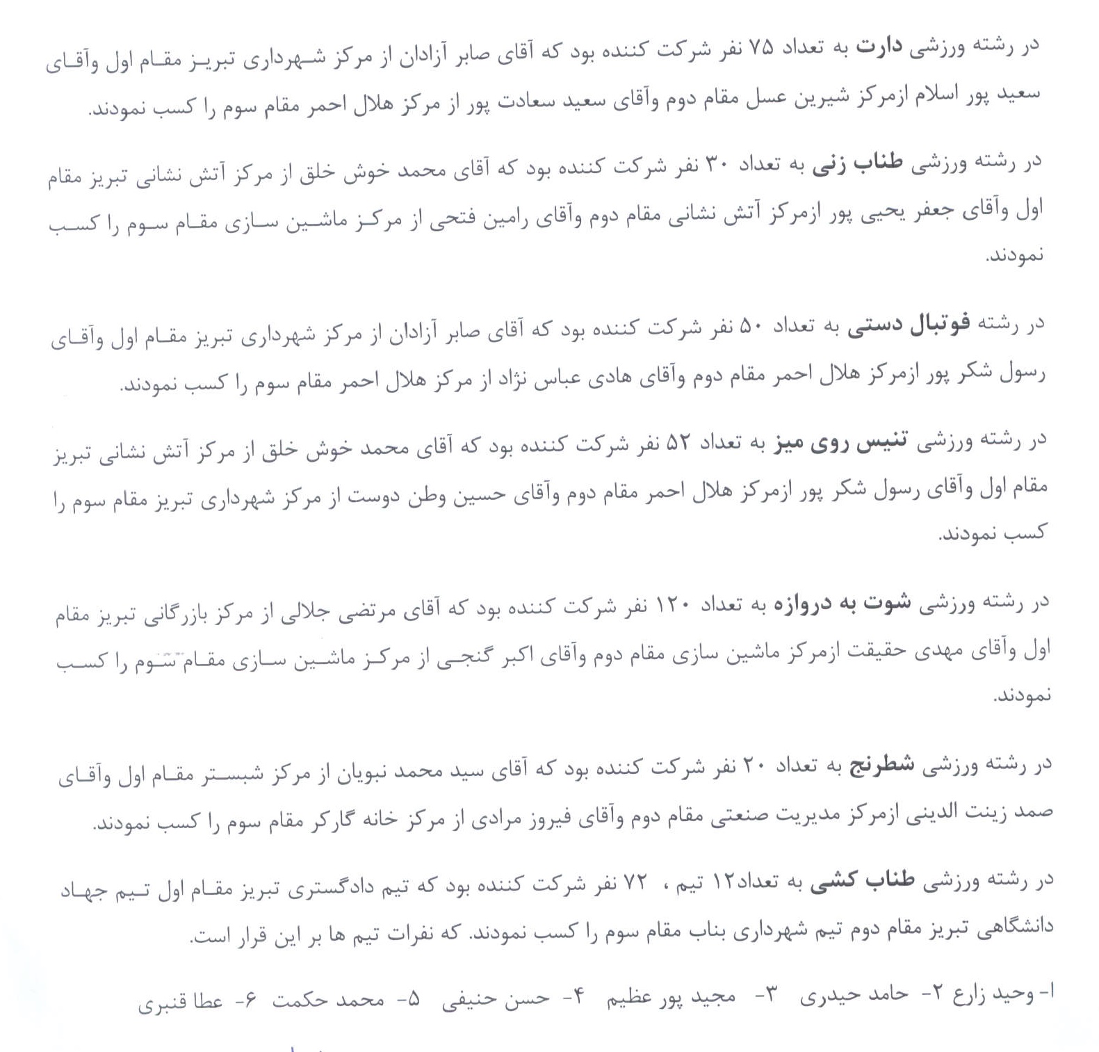 شایان ذکر می باشد این جشنواره با حضور بیش از 250 نفر از علاقمندان و ورزشکاران (دانشجو و همکار) در رشته های دارت، شوت به دروازه، شطرنج، طناب کشی و ... با شور و هیجان بالایی برگزار شد.