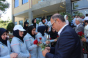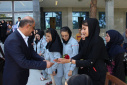 دکتر جلالی جواران، معاون آموزشی دانشگاه؛ دکتر قالیچی، رئیس واحد استانی از تیم دختران دانشگاه جامع علمی کاربردی استان که در پنجمین المپیاد فرهنگی ورزشی دانشگاه موفق به کسب مقام سوم مسابقات شدند، با اهدای شاخه گلی استقبال به عمل آوردند.