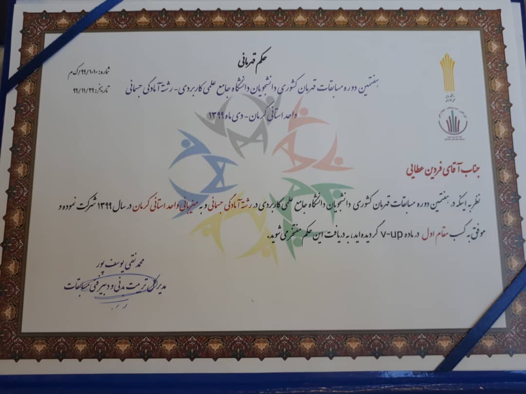 کسب مقام اول v up در مسابقات آمادگی جسمانی مجازی دانشجویان دانشگاه جامع علمی کاربردی توسط دانشجوی واحد استانی آذربایجان شرقی