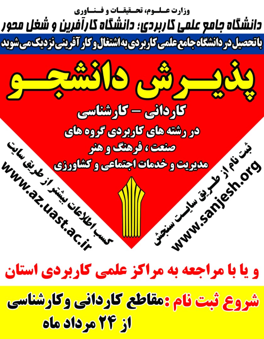 پذیرش دورههای کاردانی و کارشناسی (ناپیوسته) مهرماه سال ۱۴۰۰ دانشگاه جامع علمی کاربردی آغاز شد